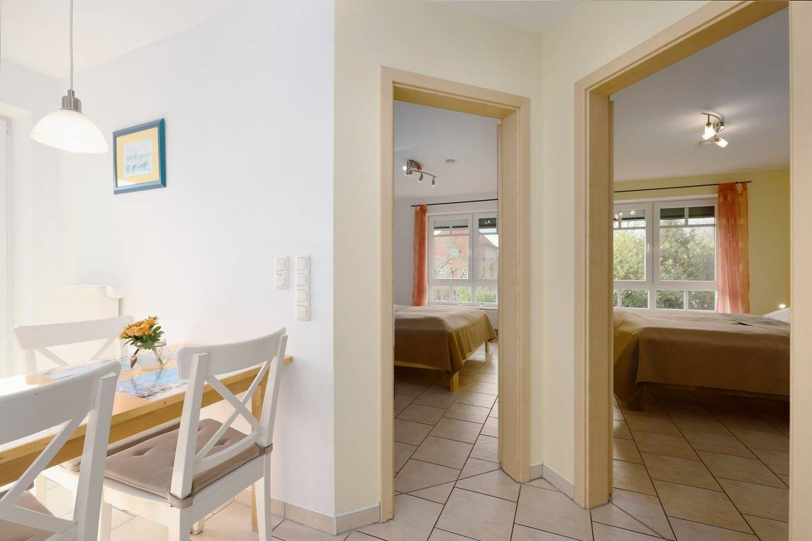 Es erwartet Sie ein großes, lichtdurchflutetes Wohnzimmer, das mit einer Couch und einem Sat-TV ausgestattet ist. Die zwei separaten Schlafzimmer sind mit einem Doppelbett und zwei Einzelbetten ausgestattet. Für unsere kleinen Gäste halten wir ein Kinderreisebett und einen Kinderstuhl kostenfrei bereit. Außenrollläden mit integrierten Fliegengittern sorgen für eine ruhige und erholsame Nacht. Das helle Bad ist mit Badewanne, separater Dusche, Handtuchwärmer, Waschmaschine und Fön ausgestattet. Die Fußbodenheizung sorgt hier für eine wohlige Wärme.