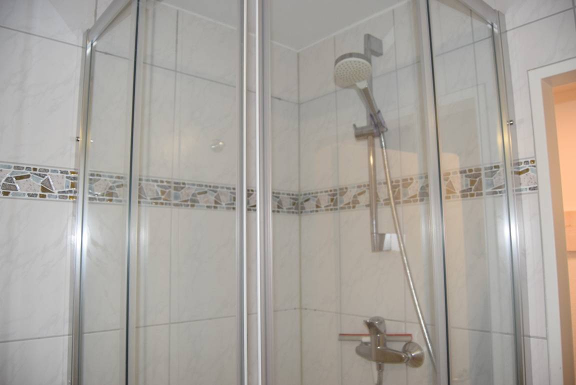 Das Badezimmer ist mit einer Dusche sowie WC ausgestattet. Die Waschmaschine, sowie Bügeleisen und Brett sind im Küchenbereich mit untergebracht.