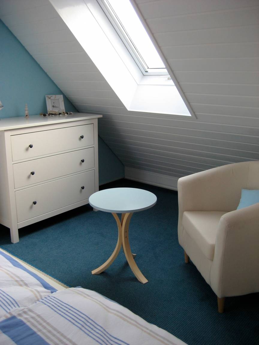 In der Galerie (Obergeschoss, ca. 10 m², Achtung: steile Treppe) befindet sich der Erwachsenen-Schlafbereich, mit einem Doppelbett (180 x 200 cm), einem Kleiderschrank, Kommode. Das Zimmer ist mit Teppich ausgelegt und vermittelt eine maritime Atmosphäre.