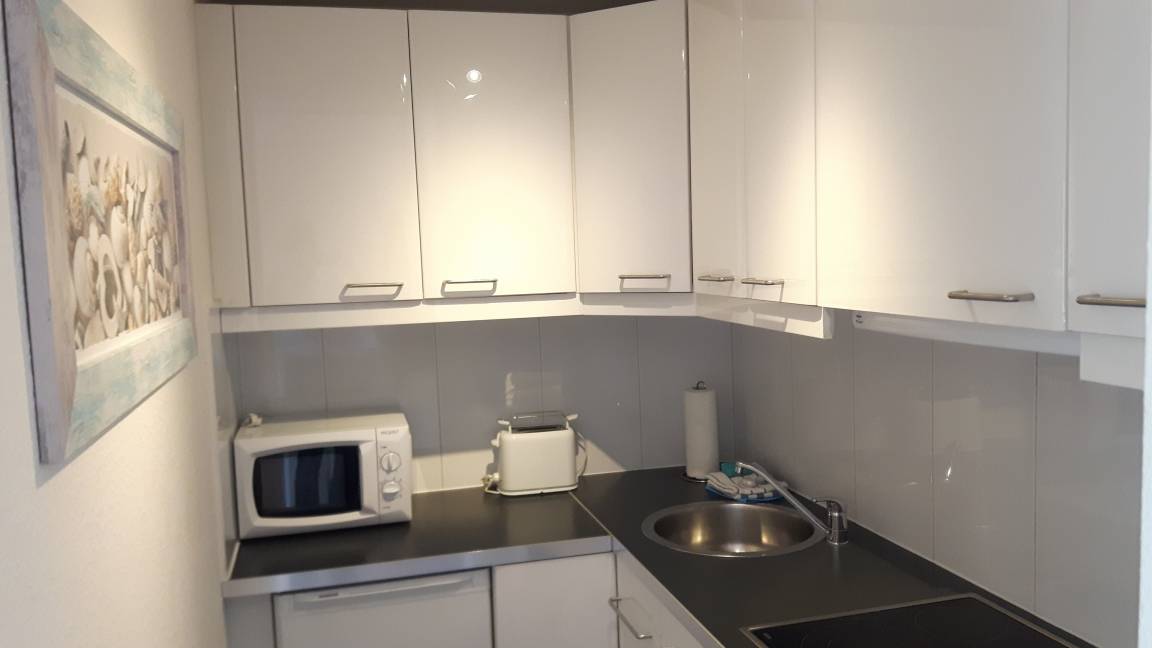 Die funktionell eingerichtete Küche ist mit einem Geschirrspüler, Herd, Backofen, Kaffeemaschine, Toaster, Wasserkocher, Mixer und allem notwendigen Koch- und Essgeschirr ausgestattet.