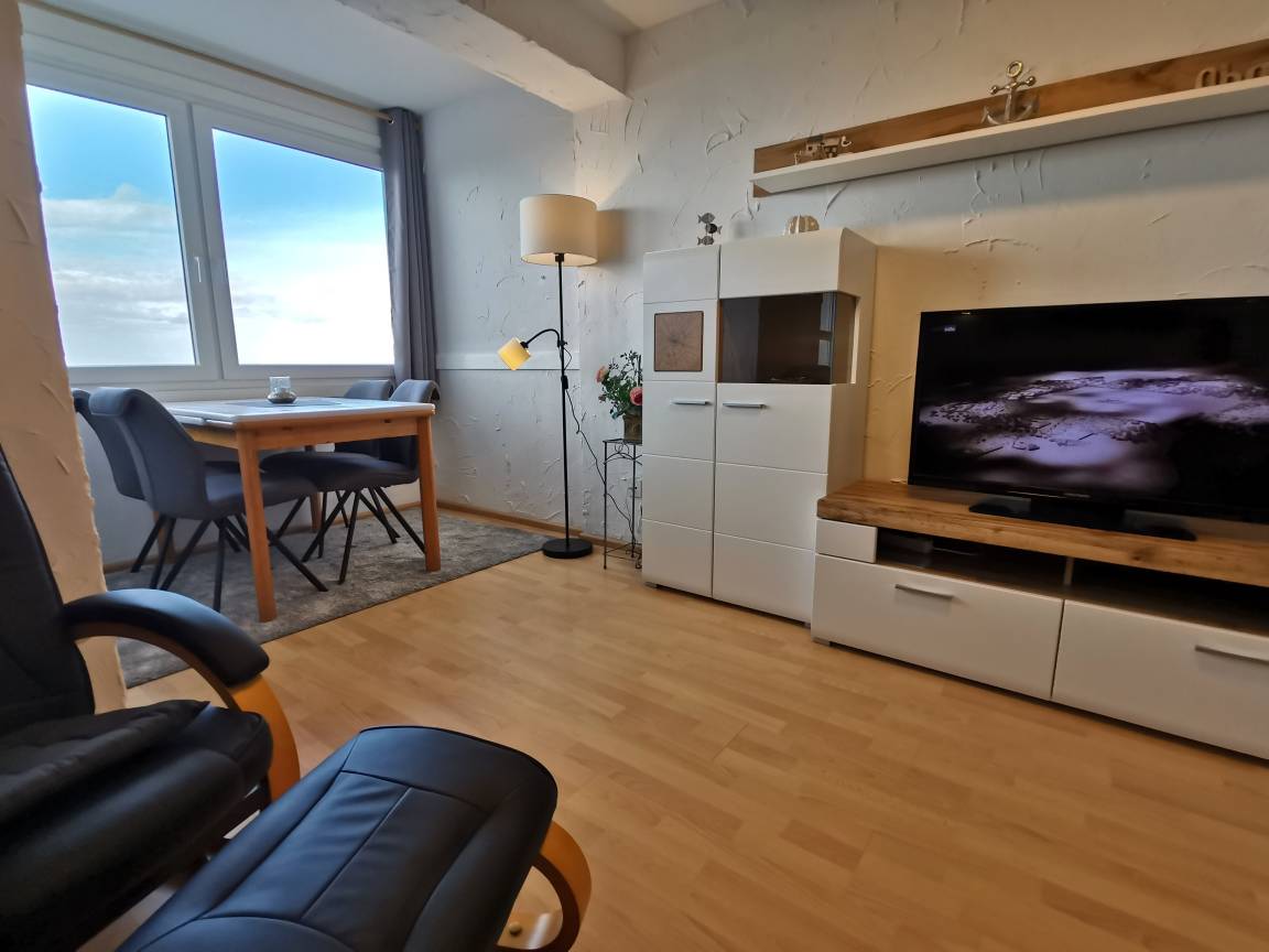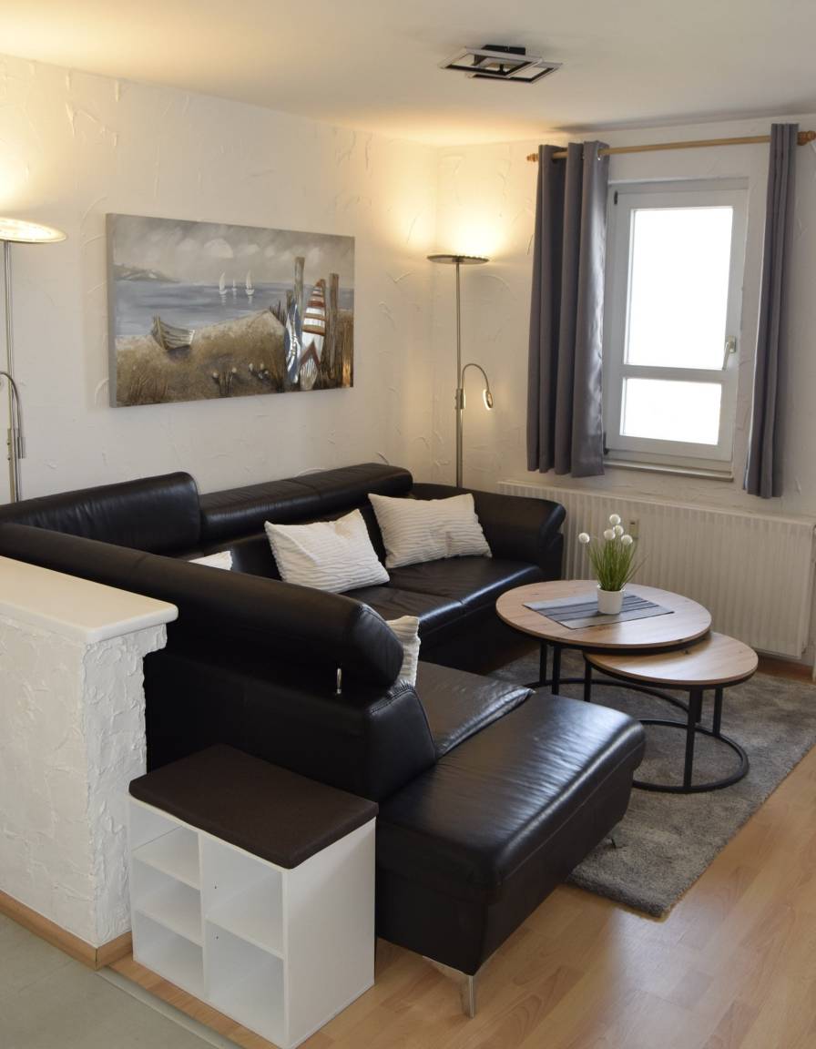 Im Wohnzimmer können Sie sich auf dem komfortablen Ecksofa entspannen und Ihre Lieblingssendungen auf dem Flachbildfernseher verfolgen.
