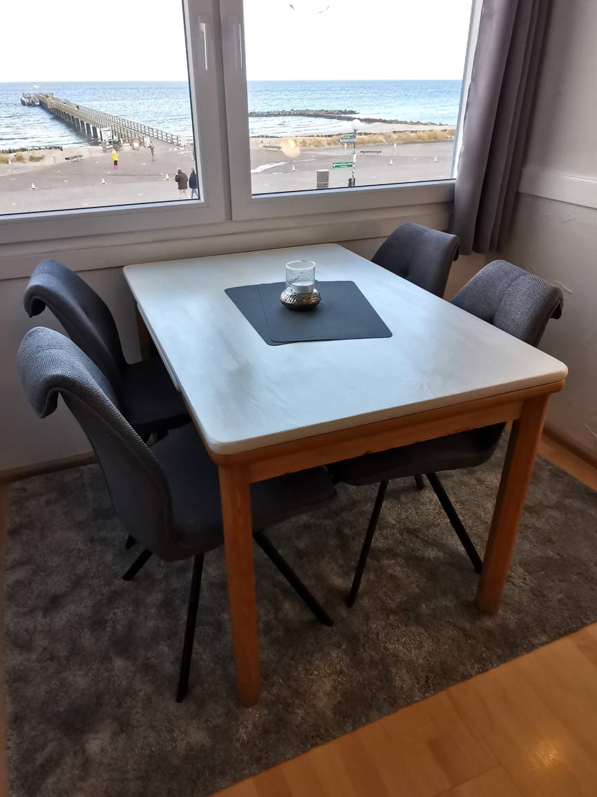 Ostseeblick gefällig? Dann nehmen Sie am Esstisch platz und beobachten die Vielseitigkeit der Ostsee. Egal ob Regen, Sonne, Sturm - von hier aus haben Sie immer den perfekten Ausblick.