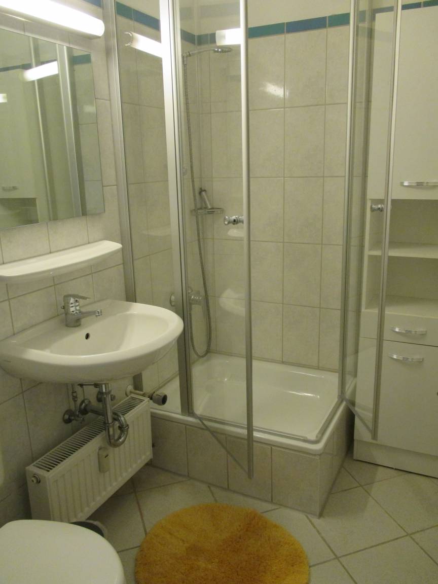 Das Appartement verfügt über ein geräumiges Bad mit Toilette, Waschbecken und Duschkabine sowie Zentralheizung und Fön. Die Küchenzeile verfügt über eine Spüle, zwei Kochplatten, einen Kühlschrank mit Gefrierfach sowie eine Mikrowelle. Der kombinierte Wohn-/Schlafraum hat einen geräumigen Kleiderschrank, ein Doppelbett mit zwei Matratzen, jeweils 90 x 200, einen Esstisch mit zwei Stühlen sowie gemütliche Fernsehsessel mit Hocker zum Entspannen. Technisch ist folgende Ausstattung vorhanden: 32 Zoll SMART-TV und Zentralheizung. Ins Internet gelangen Sie kostenlos im Appartement über WLAN, sofern Ihr mitgebrachtes Endgerät über WLAN verfügt. Balkonmöbel sind auf dem geräumigen, nach Osten ausgerichteten Balkon vorhanden. Auf dem gegenüberliegenden Parkplatz, der zur Appartementanlage gehört, finden Sie einen Stellplatz für Ihr Fahrzeug.