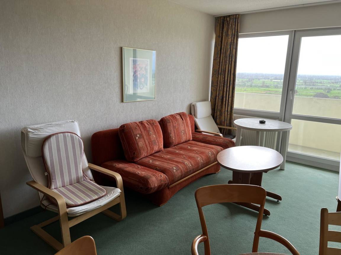 Die Ferienwohnung (Westseite) befindet sich auf der 14. Etage des Hauses Kiel und bietet mit 40 m² ausreichend Platz für bis zu 4 Personen. Im offenen Schlafzimmer stehen zwei Einzelbetten bereit, während im Wohnbereich ein bequemes Schlafsofa zur Verfügung steht. Die Einbauküche ist komplett ausgestattet und ermöglicht eine Selbstversorgung. Der komfortable Wohnraum beinhaltet eine Essecke, die Raum für gemeinsame Mahlzeiten bietet.