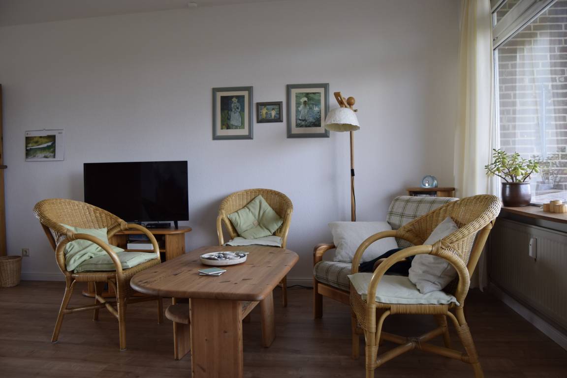 Die Wohnung ist überwiegend mit Naturmaterialien und Vollholzmöbeln ausgestattet. Dem Wunsch nach getrennten Schlafplätzen kann durch eine Schlafmöglichkeit auf dem bequemen Schlafsofa im Wohnzimmer entsprochen werden. Die Wohnanlage liegt direkt am Deich hinter dem der Strand mit Dünen beginnt. In unmittelbarer Nähe befinden sich Einkaufs- und Speisemöglichkeiten. Zu der Wohnung gehört ein PKW-Stellplatz (gekennzeichnet mit der Nummer 6), andernfalls ist die Anreise mit Bus- und Bahn problemlos möglich. Außerdem steht ihnen ein abschließbarer Abstellraum im Keller zur Verfügung (Nr. 202), so dass Sie dort beispielsweise ihre Fahrräder unterstellen können. Auch Waschmaschine und Trockner sind im Haus gegen Gebühr nutzbar.