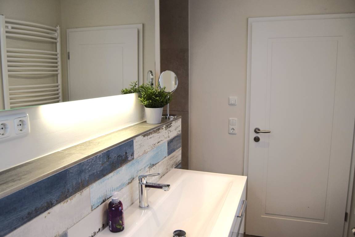 Vom Obergeschoß führt eine Außentreppe direkt in den ruhigen Garten. Hier können entspannt die Füße hochgelegt werden oder Spiele auf dem Rasen für Abwechslung sorgen. Auf der Terrasse stehen Gartenmöbel sowie zwei Sonnenliegen, ein Sonnenschirm und ein Kohlegrill bereit um den Tag genüsslich ausklingen zu lassen.