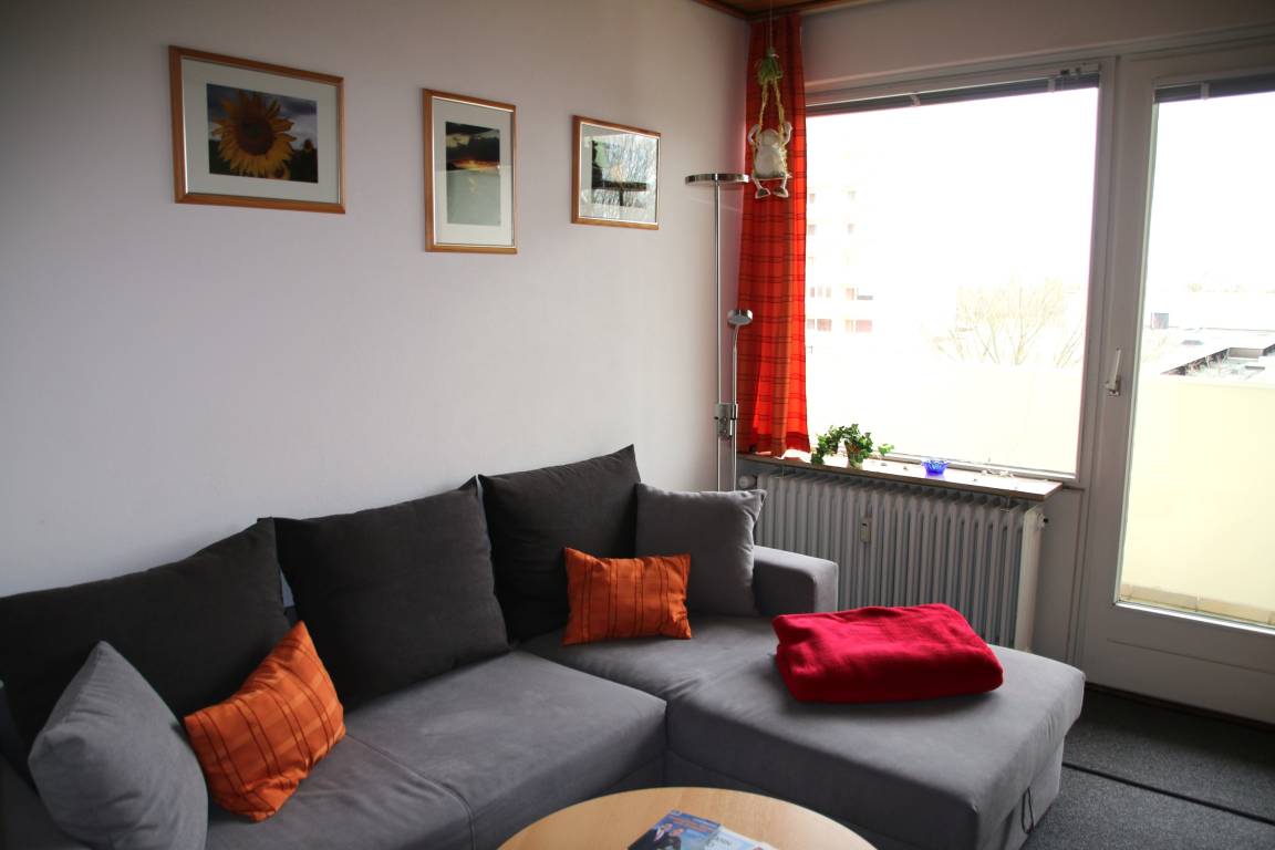 Unsere Wohnung bietet bei einer Größe von 38 m² ausreichend Platz für 3 Personen. Hier fühlen sich Pärchen und auch kleine Familien wohl. Der Wohnraum verfügt über einen Essbereich und eine Couch. Im separaten Schlafraum befindet sich ein Doppelbett (1,40 x 2,00 m) und ein Wandklappbett (0,90 x 1,90 m). Die Küche befindet sich im Eingangsbereich und ist mit einem 2-Platten-Herd, einem Kühlschrank und einem Mini-Backofen ausgestattet. Das Badezimmer ist hell und freundlich und verfügt über ein(e) Dusche/ WC. Auf dem zur Ostseite ausgerichteten Balkon können Sie die Vormittagssonne beim Frühstück genießen. Für Ihren PKW finden Sie ausreichend Abstellmöglichkeiten. Je nach Verfügbarkeit können Sie Ihren PKW direkt in einem der Carports unter der Appartementanlage abstellen oder gegenüber auf dem Parkplatz.