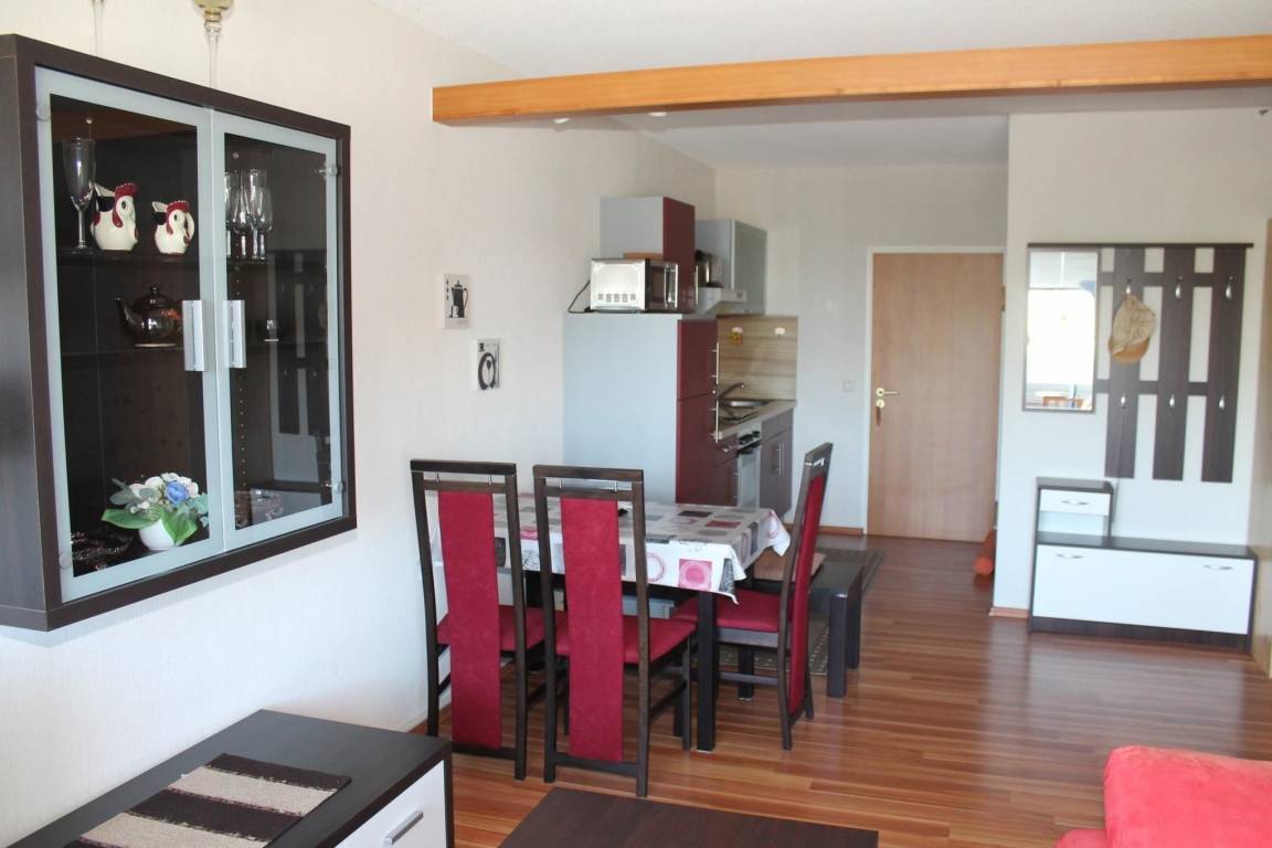 Das großzügige 1,5-Raum-Appartement (Ostseite) ist 40 m² groß, hell und geräumig, und befindet sich auf der 2. Etage im Haus Kiel. Mit 2 Einzelbetten und einem zusätzliche Schlafsofa ist es für max. 4 Personen geeignet.
