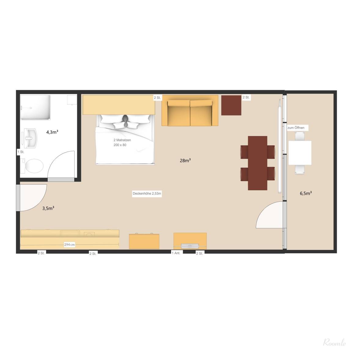 38 m² Ferienwohnung ∙ 1 Schlafzimmer ∙ 2 Gäste