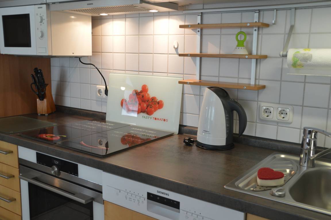 In der zum Wohnzimmer geöffneten und bestens ausgerüsteten Küche finden Sie einen 4-Platten-Herd, Backofen, Geschirrspüler und einen Kühlschrank mit Gefrierfach. Auch eine Mikrowelle, ein Toaster und eine Kaffeemaschine sind vorhanden. Ein EDEKA-Markt (saisonale Öffnungszeiten) in weniger als 500m Entfernung sorgt für ausreichend Verpflegung während Ihres Aufenthaltes. Das Badezimmer verfügt über Waschmaschine, Dusche, Föhn und WC.