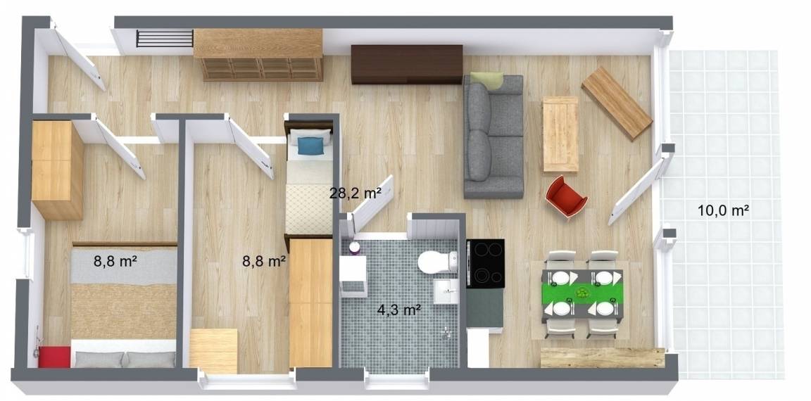 56 m² Ferienwohnung ∙ 2 Schlafzimmer ∙ 2 Gäste