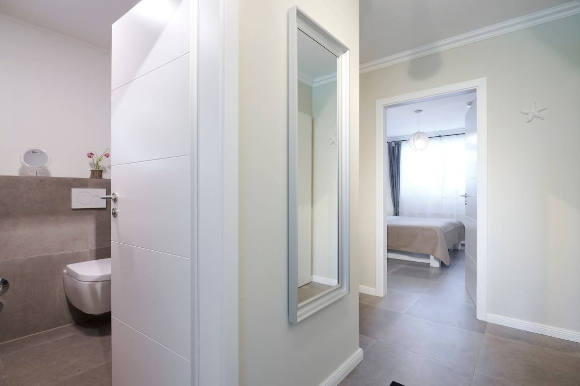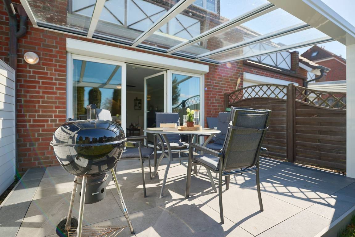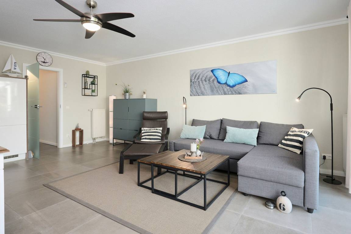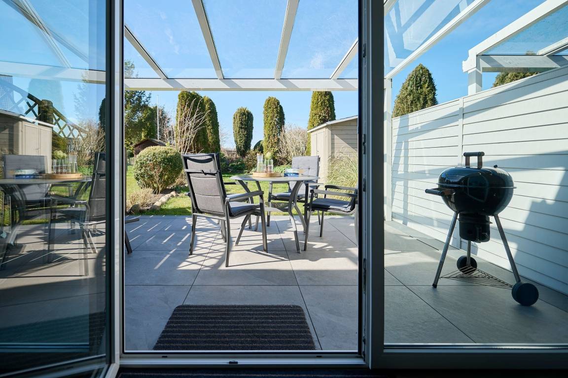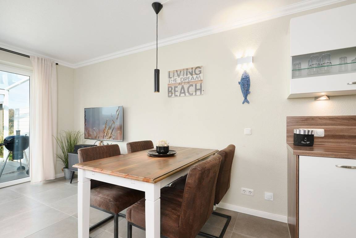 Vom großzügigen, lichtdurchfluteten Wohnzimmer können Sie direkt auf die zur Sonnenseite gerichtete Terrasse treten, die mit bequemen Gartenmöbeln und einen Grill ausgestattet ist. Die mit allem Komfort ausgestattete Küche lässt keine Wünsche offen. Das Duschbad ist mit einem Handtuchwärmer, Kosmetikspiegel und einen Fön ausgestattet. Die Fußbodenerwärmung sorgt hier für wohlige Wärme. WLAN ist inklusive.