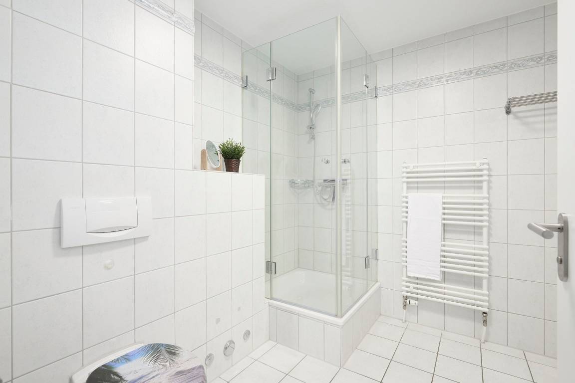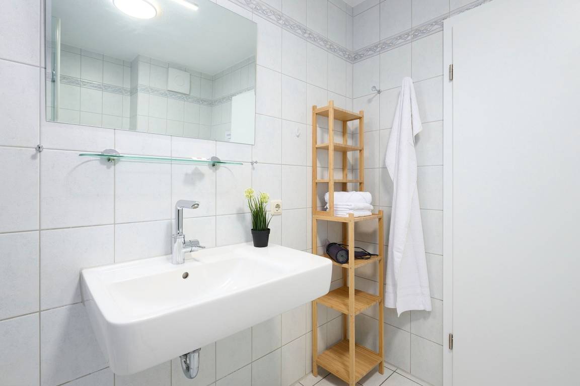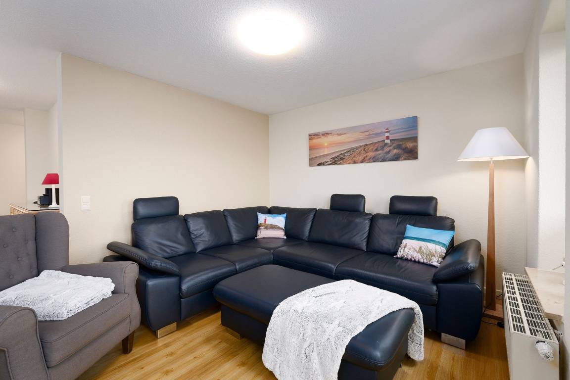 Das Wohnzimmer ist mit einer gemütlichen Couch, einem grossen modernen Flachbildfernseher, Mini-Stereoanlage und einem kostenfreien Wlan-Anschluss ausgestattet. In beiden separaten Schlafzimmern erwartet Sie jewels ein Boxspringbett (180x200 cm). Das Duschbad bietet viel Bewegungsfreiheit.