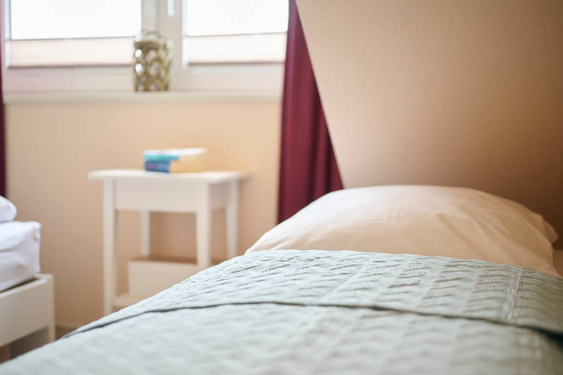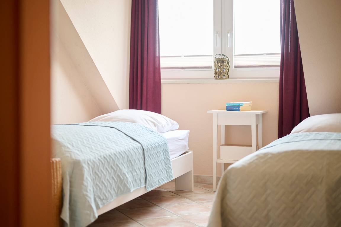 Schlafzimmer 2: 2 Einzelbetten (je 90x200 cm), Kleiderschrank, Verdunkelung: Vorhänge