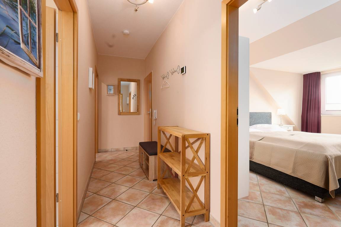 Vom großzügigen, lichtdurchfluteten Wohnzimmer können Sie direkt auf den zur Sonnenseite gerichteten Balkon treten. Der Balkon ist mit bequemen Gartenmöbeln, Sonnenschirm und einer Liege ausgestattet. Die mit allem Komfort ausgestattete Küche lässt keine Wünsche offen. Die Schlafzimmer sind mit einem komfortablen Boxspringbett und zwei Einzelbetten, die sich bei Bedarf zusammenstellen lassen, eingerichtet. Ein kostenloser WLAN–Anschluss verbindet Sie auch im Urlaub mit dem "Rest der Welt".