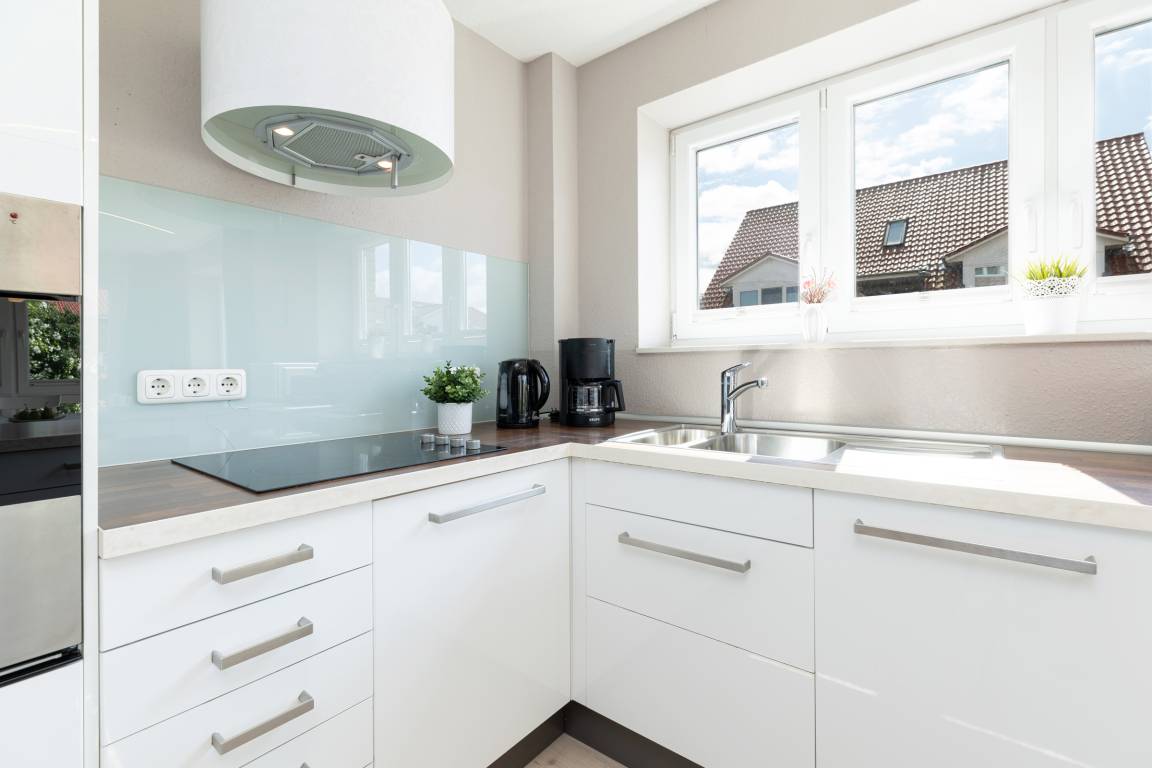 Die offene Küche ist vollständig ausgestattet: Ceranfeld, Backofen, Kühlschrank mit Gefrierfach, Spülmaschine, Kaffeemaschine, Toaster, Mixer, Wasserkocher und weitere Küchenhelfer stehen Ihnen zur Verfügung. Der angrenzende Essbereich bietet ausreichend Platz für gemeinsame Mahlzeiten.