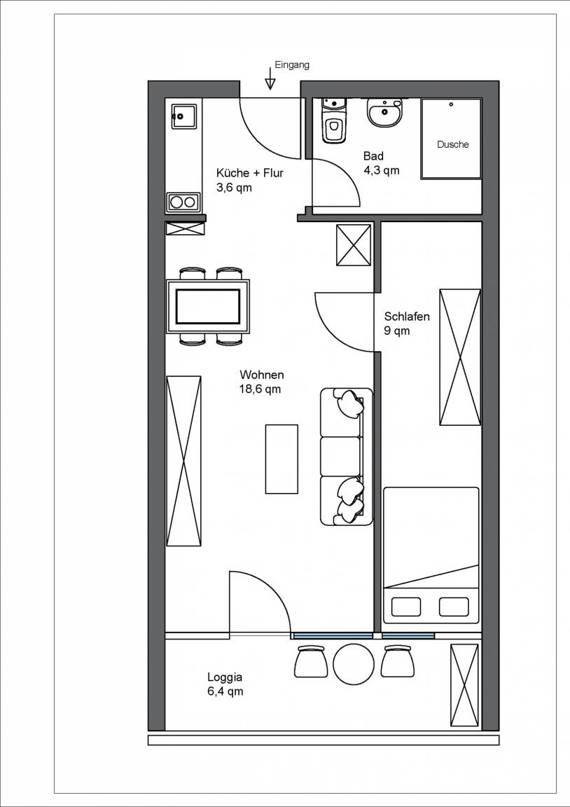 Das Appartement ist liebevoll eingerichtet und bietet für maximal 4 Personen Platz. Sie erreichen es bequem über einen Fahrstuhl im dritten Stock. Der kombinierte Wohn-/ Schlafraum verfügt neben einem gemütlichen Schlafsofa (140x200 cm), einem Flachbildfernseher und einem Blu-Ray-Player über einen gemütlichen Essbereich. Der angrenzende, windgeschützte Balkon (zur Westseite ausgerichtet) bietet genügend Platz, um Ostseeluft zu genießen und lädt zum Verweilen ein. Außerdem steht Ihnen kostenfrei W-LAN zur Verfügung. Die Küche bietet eine Mikrowelle, einen Kühlschrank mit Gefrierfach und ein 2 Platten-Cerankochfeld. Das moderne Badezimmer ist meiner großzügigen Regenwalddusche und einem WC ausgestattet. Im separaten Schlafzimmer finden Sie ein hochwertiges Doppelbett (140 x200cm) mit verstellbarem Lattenrost und einen großzügigen Kleiderschrank vor. In einem kleinen Tresor können Sie Ihre Wertsachen auch während des Strandaufenthalts sicher aufbewahren. Die touristischen Angebote können Sie der in der Wohnung ausliegenden Informationsmappe entnehmen.