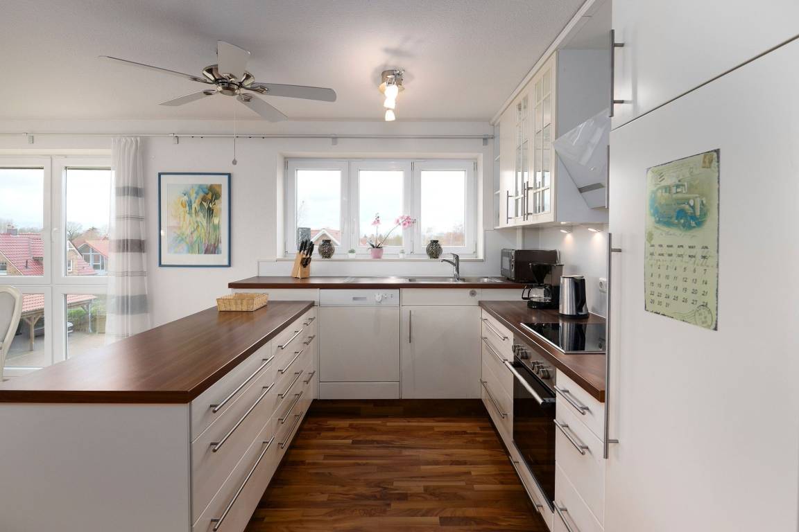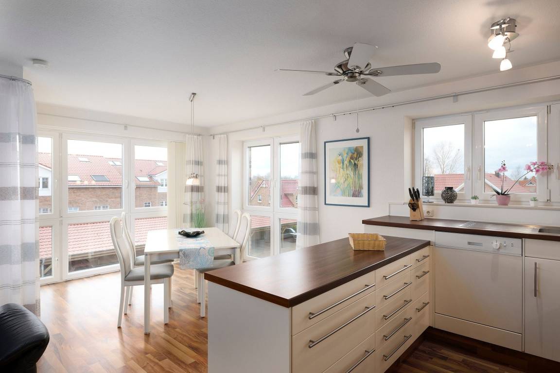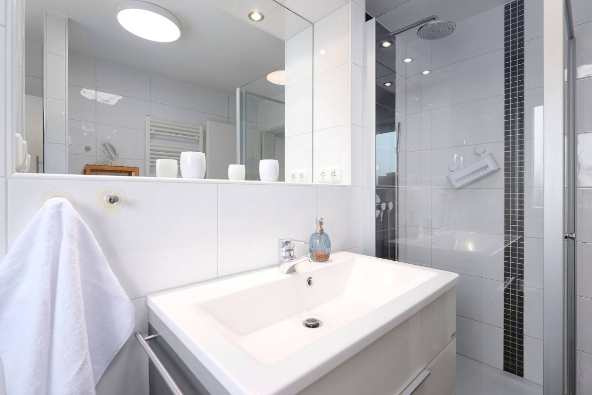Die moderne, lichtdurchflutete 3-Zimmer-Ferienwohnung lädt Sie zum Entspannen und Relaxen ein. Auf 78 qm verteilen sich zwei separate Schlafzimmer, ein Duschbad und ein Wohnzimmer mit offener Küche. Ihre Ferienwohnung erreichen Sie bequem über einen Fahrstuhl.