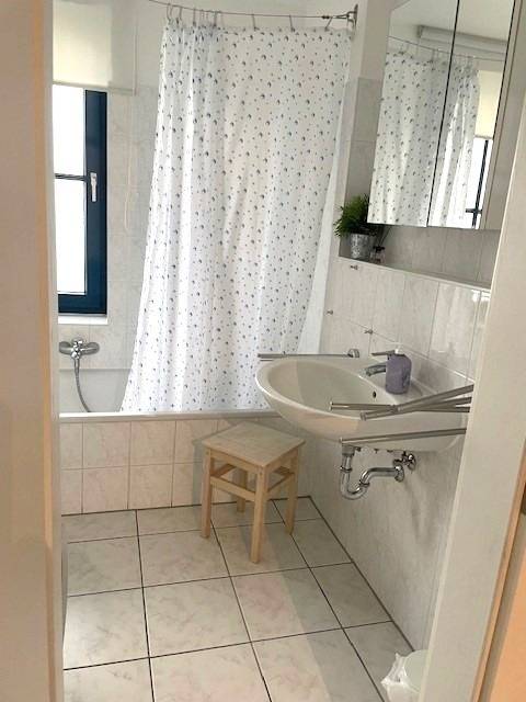 Das Bad (4,4 m²) ist ausgestattet mit Badewanne und WC. Hier steht auch die Waschmaschine.