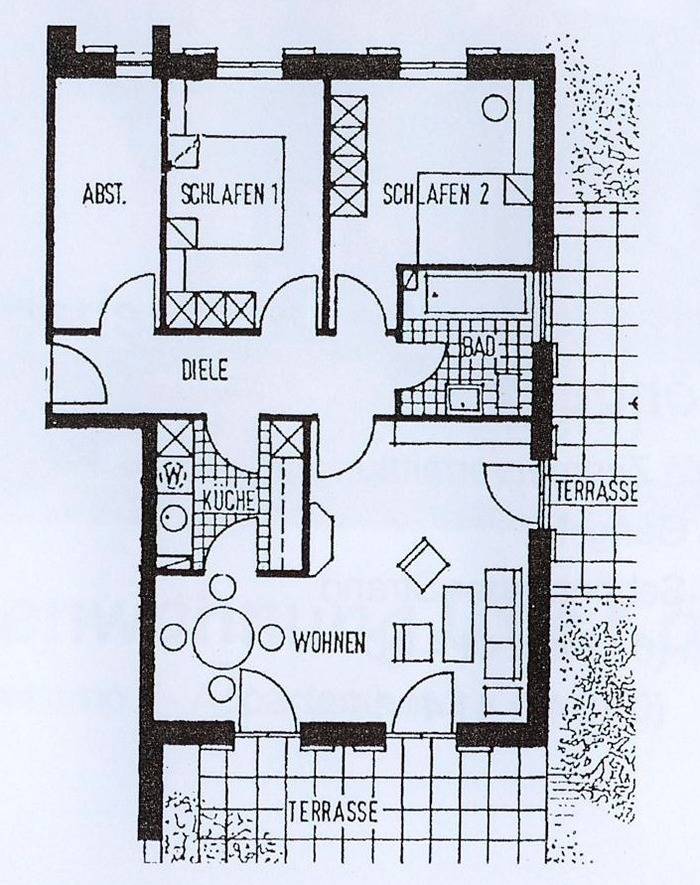 Das Appartement ist über 80 m² groß und verfügt über 3 schicke Zimmer sowie einen Abstellraum. Das großzügige Wohnzimmer mit großem LCD-Fernseher und neuer, bequemer Sitzgruppe lädt zu gemütlichen Stunden ein. Der Essbereich ist im Wohnzimmer integriert und grenzt an die geräumige, neue Küche an. Diese ist mit einem Cerankochfeld, Backofen, Geschirrspüler, Mikrowelle, Gefrierfach und vielem mehr gut ausgestattet.