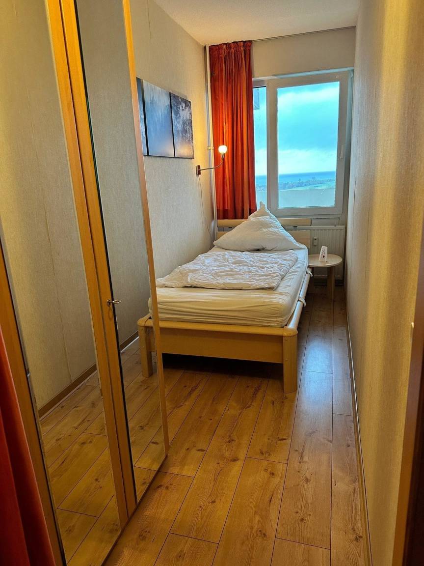 Das Appartement mit einer Größe von 40 m² befindet sich in der 13. Etage des Hauses Kiel und bietet einen beeindruckenden Blick über die Ostsee. Es verfügt über ein Schlafzimmer mit einem großen Bett sowie ein Wohnzimmer, in dem sich ein großes Schrankbett und ein Schlafsofa befinden, sodass maximal 4 Personen Platz finden. Eine einladende Sitzecke sowie eine separate Essecke laden zum gemeinsamen Verweilen ein.