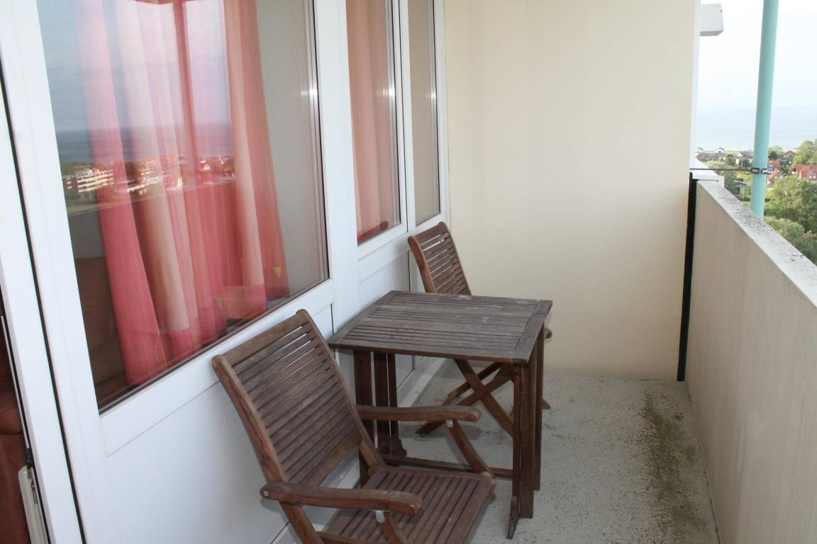 Das Ferienappartement auf der 13. Etage im Haus Kiel bietet einen beeindruckenden Außenbereich in Form einer möblierten Loggia. Diese Loggia eröffnet einen sensationellen Blick über die Ostsee, der bei klarem Wetter bis nach Dänemark reicht. Sie ist bei jedem Wetter und zu jeder Jahreszeit einladend und eignet sich perfekt zum Entspannen.