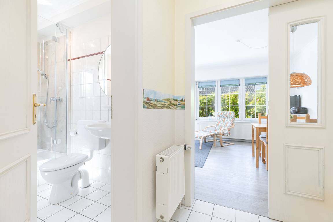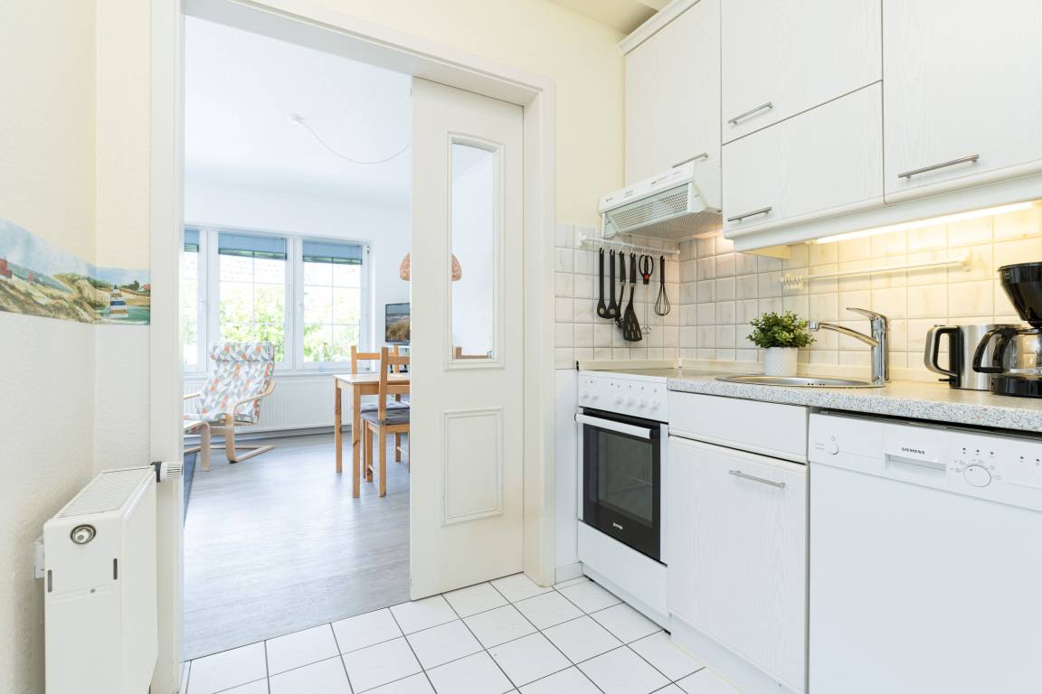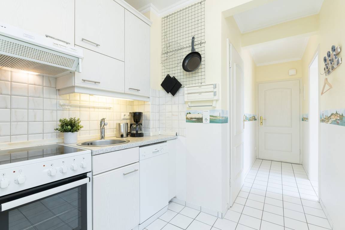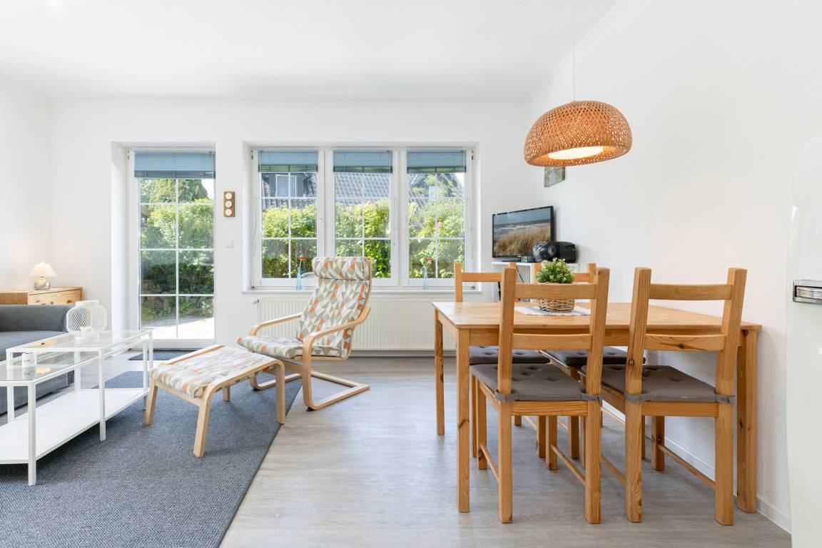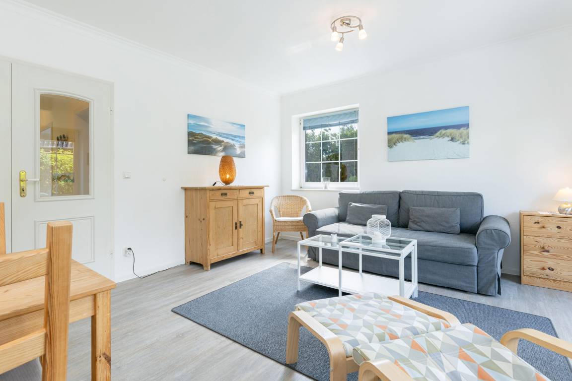 Das separate Schlafzimmer mit einem Doppelbett, der Wohnbereich mit Pantry-Küche und das Bad verteilen sich auf einer Ebene. Vom hellen Wohnzimmer haben Sie einen direkten Zugang auf die große sonnige Terrasse. Was gibt es Schöneres, als an der frischen Ostseeluft in gemütlichen Gartenmöbeln das morgendliche Frühstück zu genießen oder den Abend bei einem Glas Wein ausklingen zu lassen? Ein WLAN–Anschluss ist hier selbstverständlich inklusive.