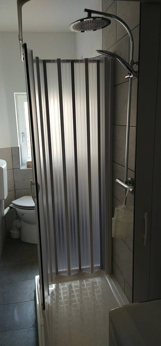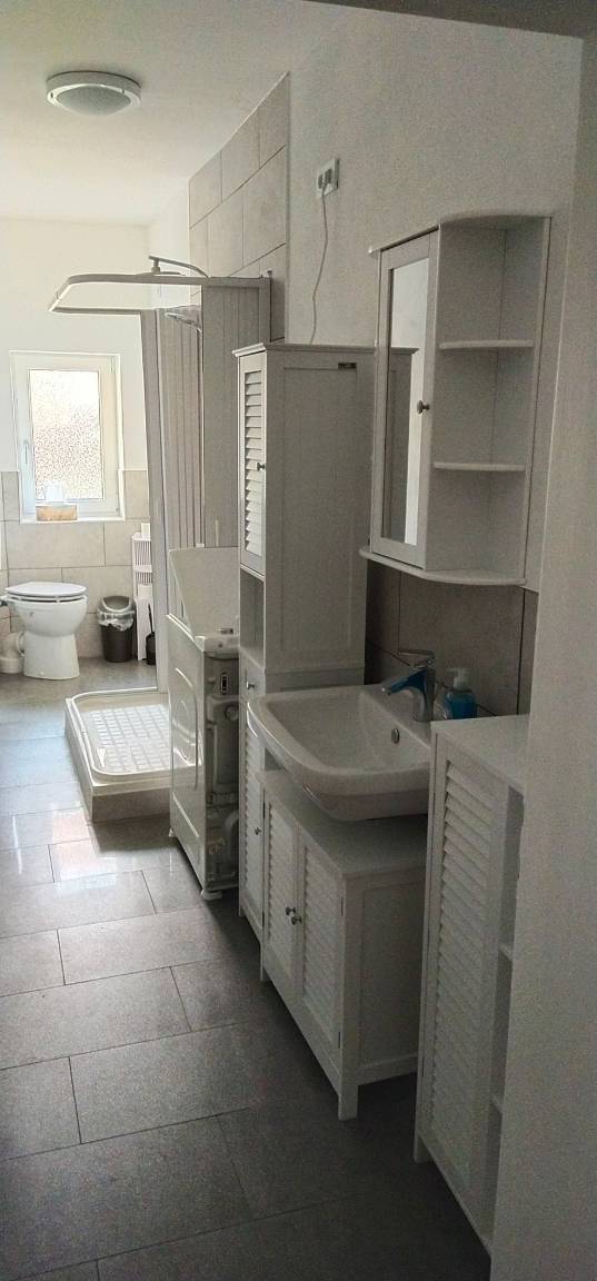 Das Badezimmer ist mit einer 70x120 Dusche und einem erhöhtem, randlosen WC ausgestattet. Eine Waschmaschine ist auch im Badezimmer vorhanden.