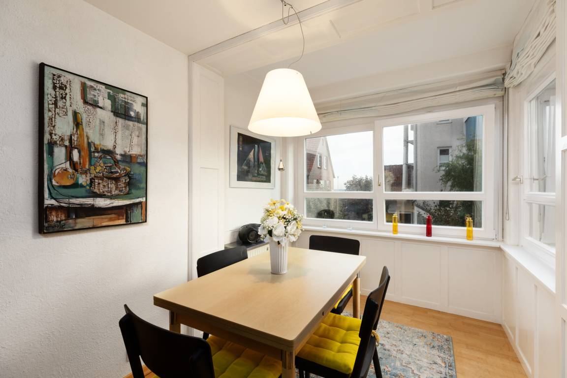 Die liebevoll eingerichtete Ferienwohnung besticht durch ihre helle, freundliche Atmosphäre und bietet alles, was man für einen entspannten Aufenthalt an der Ostsee benötigt. Im modernen Wohnbereich laden eine bequeme Couch, ein Flachbild-TV und WLAN zum Wohlfühlen ein. An den Wohnraum angrenzend befindet sich die Loggia – ideal, um den Tag ausklingen zu lassen. Die Küche ist mit Backofen, Cerankochfeld, Kühlschrank mit Gefrierfach, Wasserkocher, Mixer, Toaster und Geschirrspüler ausgestattet und lässt keine Wünsche offen. Ein absolutes Highlight ist die Siebträger-Kaffeemaschine und lässt jedes Kaffeeliebhaber-Herz höher schlagen. Der angrenzende Essbereich bietet Platz für gemeinsame Mahlzeiten. Im Schlafzimmer sorgt ein komfortables Boxspringdoppelbett für erholsame Nächte. Eine weitere Schlafmöglichkeit bietet das Schlafsofa im Wohnbereich. Das Badezimmer ist modern gestaltet und verfügt über einen Haartrockner.
