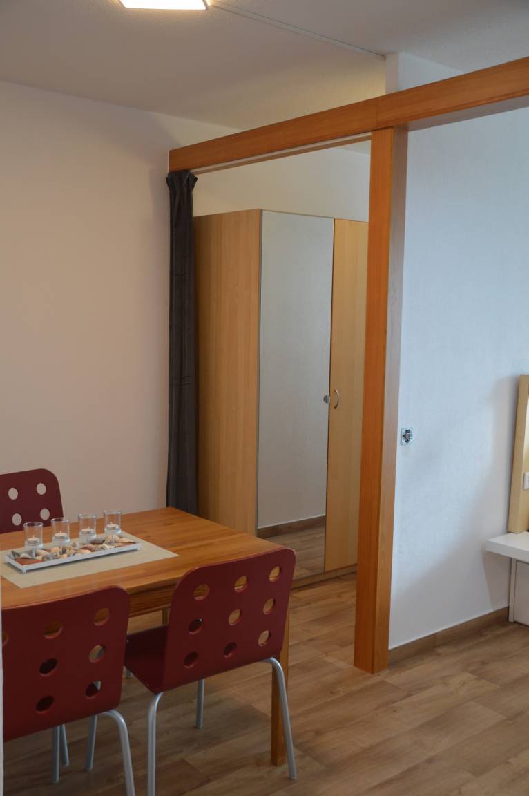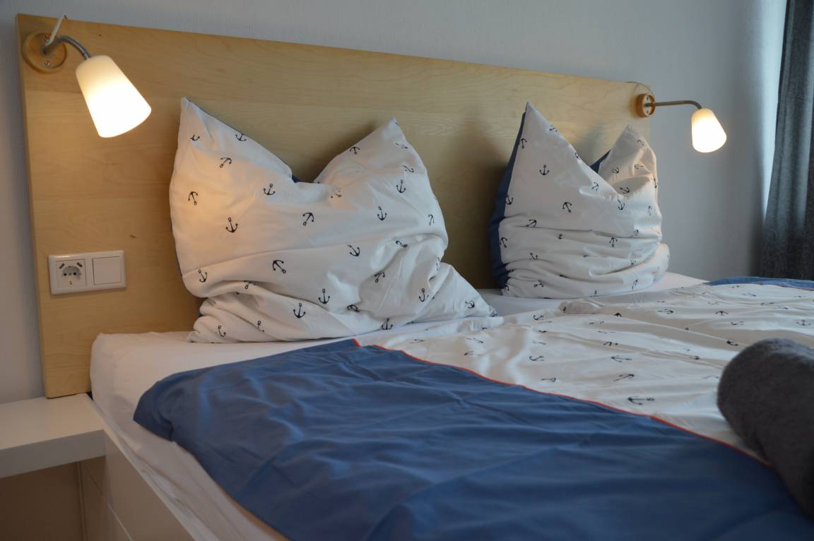 Unser 38 m² großes Appartement "Backbord" ist barrierearm mit dem Aufzug oder über das Treppenhaus zu erreichen. Es bietet einen gemütlichen Wohn und Schlafbereich mit TV und einem komfortablen Bett sowie einen bequemen Essbereich. WLAN ist hier selbstverständlich ebenfalls verfügbar. Ebenso gibt es einen Balkon mit herrlichem Blick über die Probstei, auf dem Sie die angenehme Brise der nur 700 Meter entfernten Ostsee genießen können. Hinter einer Trennwand stehen für die kleinen zwei Schlafplätze in einem Doppelstockbett zur Verfügung, sodass auch für sie der Aufenthalt zum Erlebnis wird. Eine Pantryküche bietet die Möglichkeit, sich selbst zu versorgen und das Badezimmer mit Dusche und WC rundet die Einrichtung ab. Im Flur direkt gegenüber liegt unser zweites Appartement "Steuerbord", das ebenfalls buchbar ist.