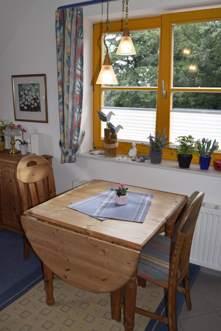 Für gemütliche Abende ist die Ferienwohnung mit einem Fernseher sowie einem DVD Spieler ausgestattet.
