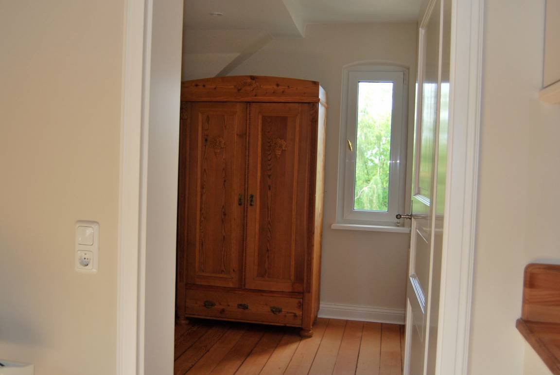 Das Turm-Appartement, im Obergeschoß der Villa Baltica, ist ein gemütliches Dachgeschoßstudio mit sichtbarer Tragstruktur in Holz und separatem Bad. Neben einer zum Wohn-/Essbereich offenen hochwertigen und vollständig ausgestatteten Küche finden Sie hier eine gemütliche Sofaecke mit englischen Landhausmöbeln und moderner Unterhaltungselektronik (LCD-TV, DVD, CD-Radio, WLAN). Die Besonderheit des Turmappartements ist ein gemütliches Alkovendoppelbett.