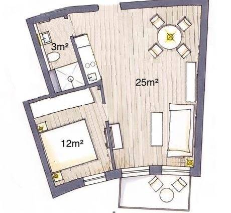 39 m² Ferienwohnung ∙ 1 Schlafzimmer ∙ 2 Gäste