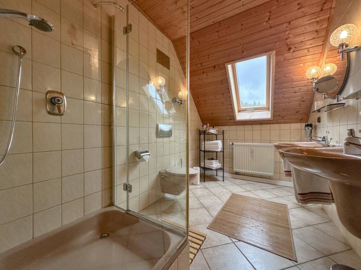 In der 2. Etage: Wohnzimmer mit Doppelschlafcouch, TV(Flatscreen, Satellit), Ofen(Holz, Kachel) , Küche mit Esstisch, Radio, Wasserkocher, Toaster, Kochherd(4 Kochplatten, elektrisch), Dunstabzugshaube, Kaffeemaschine(Filter), Backofen, Geschirrspüler, Kühlschrank(+ Gefrierfach), Zitruspresse , Schlafzimmer mit Doppelbett(160 x 200 cm) , Schlafzimmer mit Doppelbett(180 x 200 cm) , Badezimmer mit Dusche, 2x Waschbecken, Toilette, Föhn , Abstellraum mit Waschmaschine, Bügelbrett, Bügeleisen