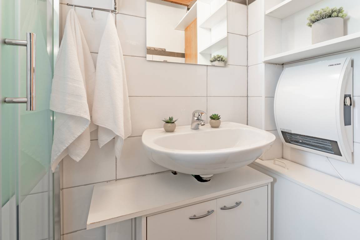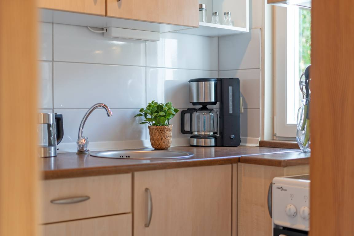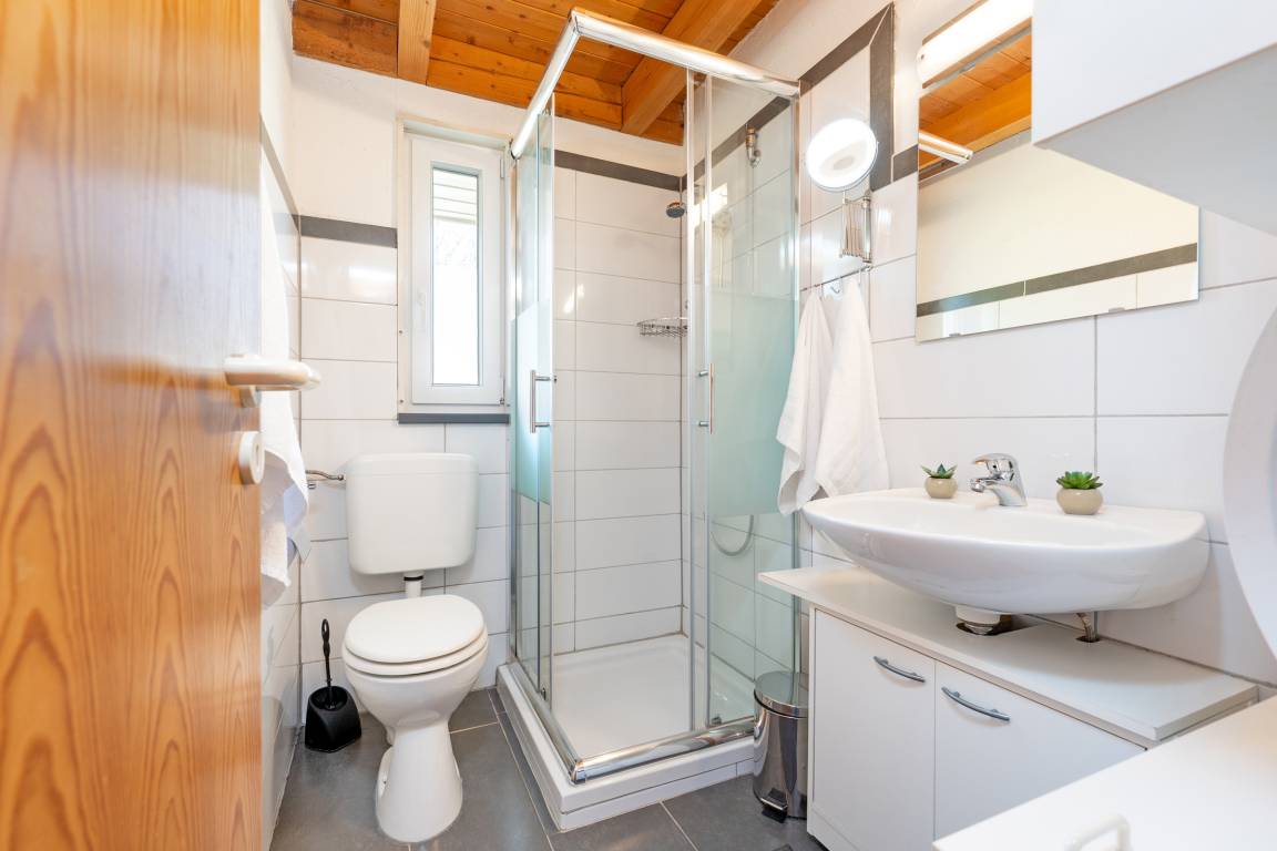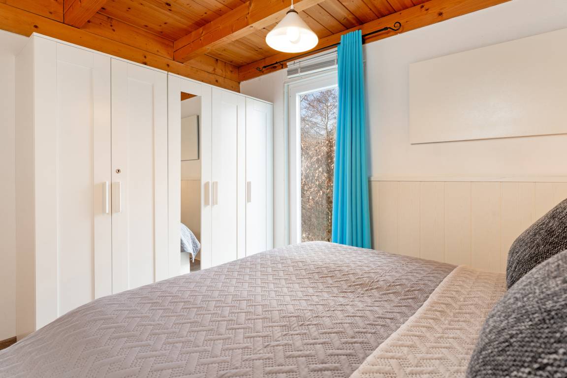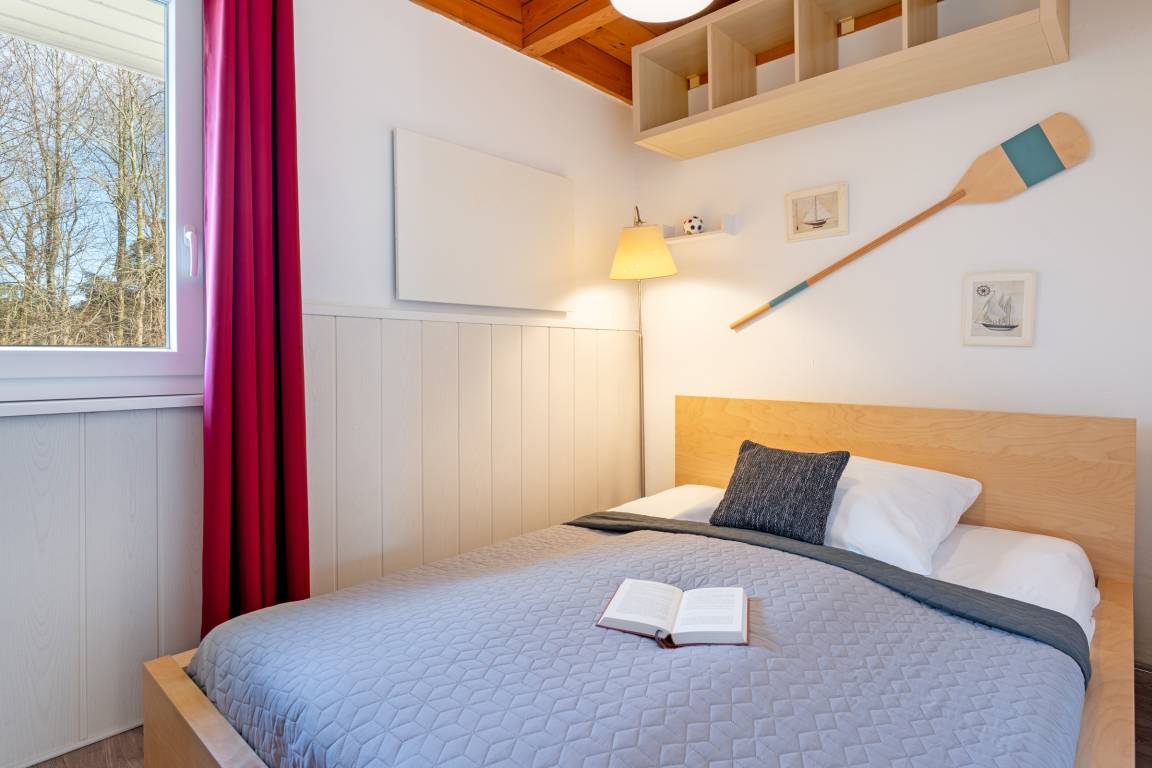 Das erste Schlafzimmer verfügt über ein Doppelbett, das zweite über ein französisches Doppelbett; zusätzlich bietet das Wohn-/Schlafzimmer ein Schlafsofa. Das Bad ist mit einer Dusche mit Haltegriff, welche eine Einstiegshöhe von 15cm hat und einem Haartrockner ausgestattet.