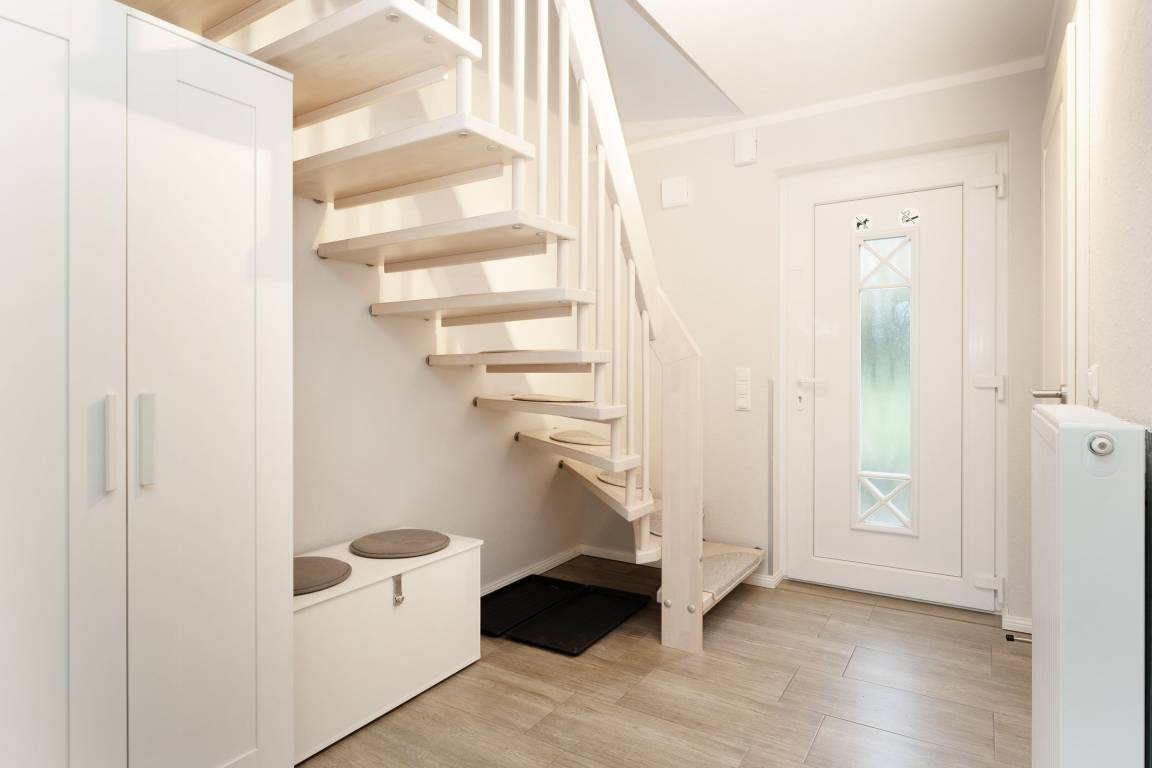 Zwei PKW-Außenstellplätze stehen Ihnen direkt am Haus zur Verfügung. Kinderhochstuhl und Kinderreisebett sowie ein Bettschutzgitter sind inklusive. Die Waschmaschine sorgt für eine stets saubere Urlaubsgarderobe.
