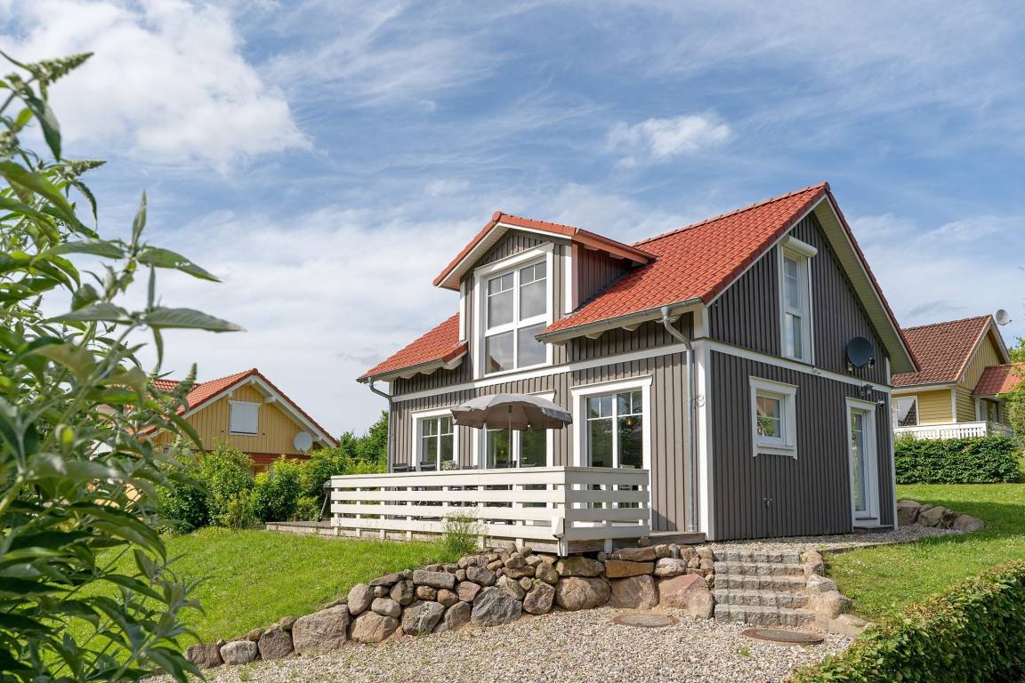 Idylle pur: schickes Schwedenhaus in Mönchneversdorf mit 3 Schlafzimmern, 2 Bädern, Sauna, großer Terrasse, Garten und einer Wohnfläche von ca. 68 m² für bis zu 6 Personen.