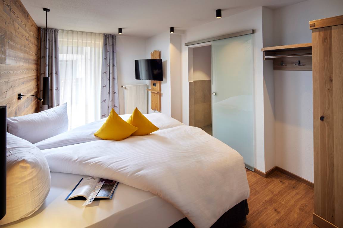 In unserem Exklusiv Maximilian mit 110 m² für bis zu 6 Personen wohnen Sie in einem traumhaften Appartement im 1.OG mit herrlichem Blick auf die Berglandschaft. 3 Schlafzimmer (2 Boxspringbetten und 1 Stockbett) mit jeweils eigenem Bad, eine offen gestaltete Küche mit großem Esstisch und ein gemütlicher Wohnbereich bieten Ihnen viel Platz für die ganze Familie und sehr hohen Komfort.