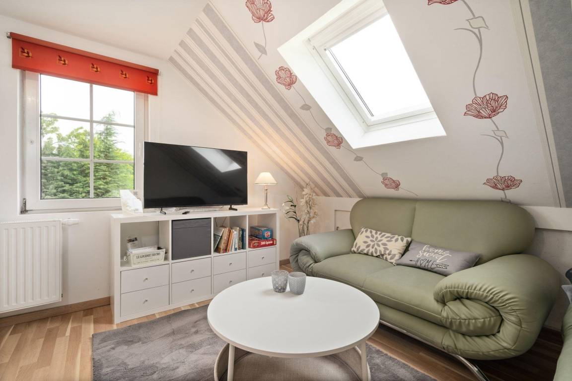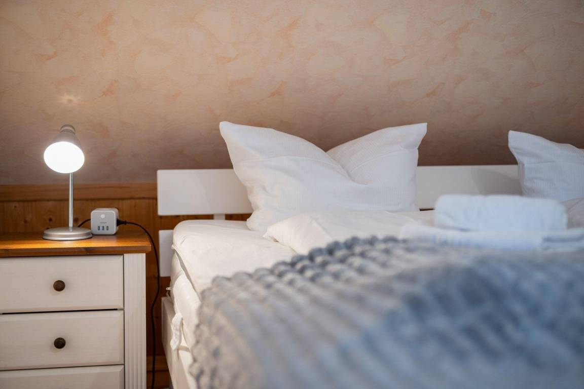 Das helle Dachgeschoss-Apartment am Schwarzen See bietet auf ca. 55 m² Platz für bis zu 4 Personen. Es verfügt über zwei Schlafzimmer, die jeweils mit einem eigenen Fernseher ausgestattet sind. Ein Schlafzimmer kann auch als Wohnbereich genutzt werden. Die offene Wohnküche lädt zum gemeinsamen Kochen ein. Zur Gemeinschaftsnutzung steht eine Sauna im Nebengebäude zur Verfügung, die nach Absprache mit den Eigentümern genutzt werden kann. Das Apartment ist kinder- und haustierfreundlich und eignet sich ideal für Familien. WLAN ist ebenfalls vorhanden. Die Lage am Ortsrand von Schwarz, nur 200 m vom See und der Badestelle entfernt, bietet Ruhe und Natur pur. Weitere Annehmlichkeiten und Freizeitmöglichkeiten sind in der Nähe zu finden. Extras wie Bettwäsche und Handtücher sind nicht inklusive, können jedoch über die Gäste-App hinzugebucht werden.