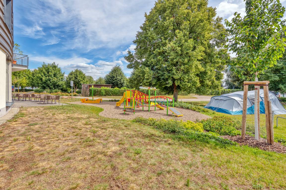 Die Küche, Waschmaschinen und Trockner befinden sich im Nebengebäude zur gemeinschaftlichen Nutzung. Neben dem Restaurant Anker und Platz erwarten Dich ein Spielplatz, ein Kanuverleih und WLAN.