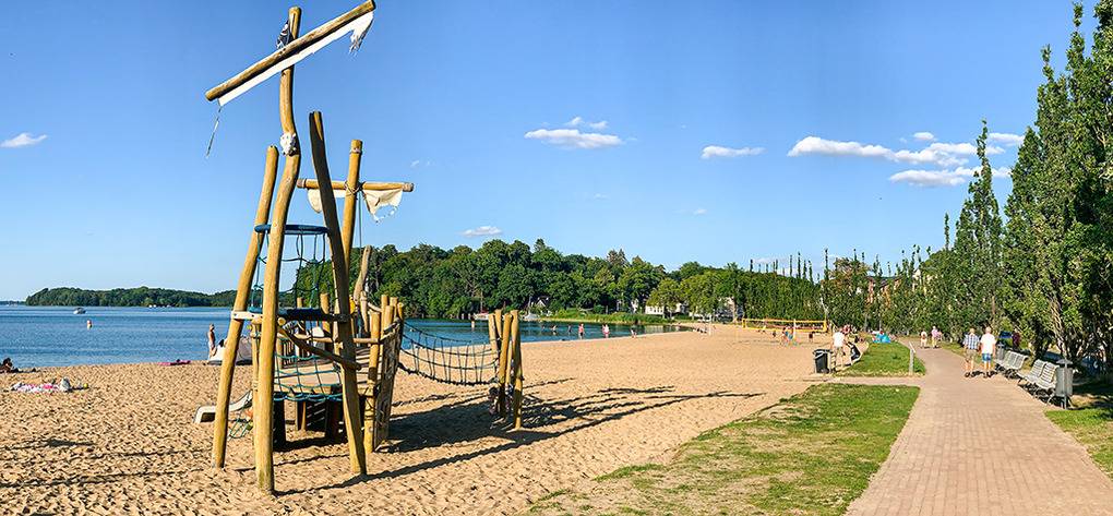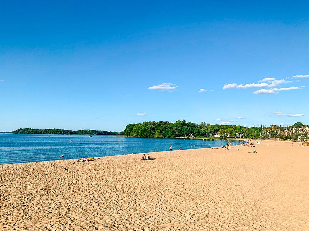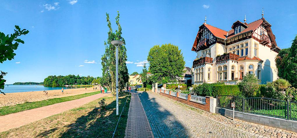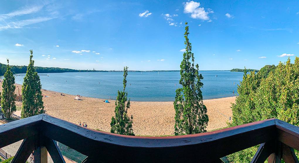 Ort: Schwerin, Ortsteil Zippendorf. Einzigartige Lage direkt am schönen Badestrand mit Strandpromenade. Herrlicher Panoramablick auf den Schweriner Innensee. Feinsandiger Badestrand nur 20 m. Gaststätten, Imbissbuden, Event-Locations 50-100 m. Zoo 1 km. Ortsmitte mit Schweriner Schloss, vielfältigem Shopping- und Gastronomieangebot 4,5 km.