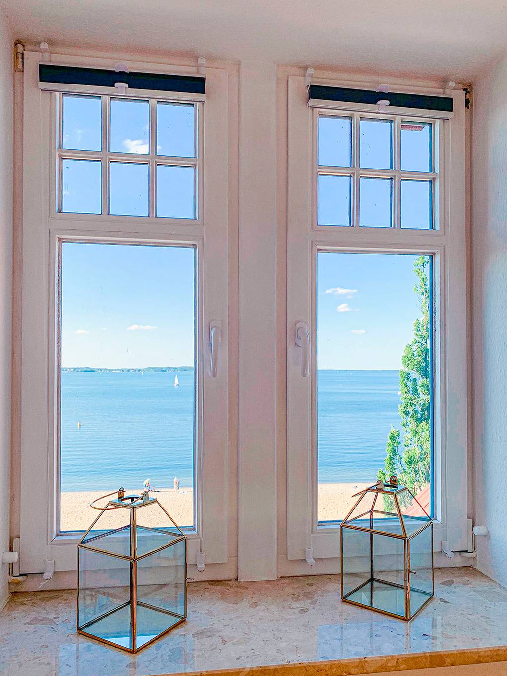 D 45.6 Wohnung 2 Pers.: 2 1/2-Zimmerwohnung mit 100 qm Wohnfläche, 2. Etage. Großer Wohn-/Essraum mit Couchgarnitur, Flachbild-TV, Radio/CD, Esstisch, kleinem Balkon (schöner Wasserblick). Separate Küche mit Esstisch, Backofen, Spülmaschine. Großes Doppelzimmer mit gemütlicher Sitzecke, schönem Seeblick. Bad: Du, Bw, Wb, WC, Fön.