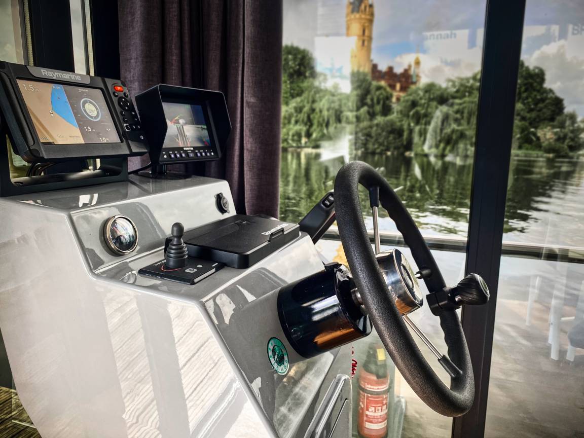 Herzlich willkommen auf unserem COSY Explorer. Mit unserem führerscheinfreiem Hausboot können Sie direkt vom Schweriner Schloss ablegen und die Natur den Schweriner See und angrenzende Gewässer erkunden. Natur und Erholung im absolutem Einklang.