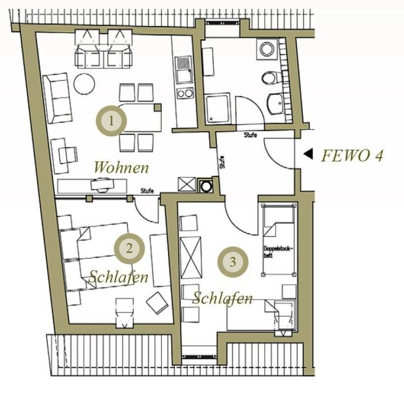 60 m² Ferienwohnung ∙ 2 Schlafzimmer ∙ 6 Gäste