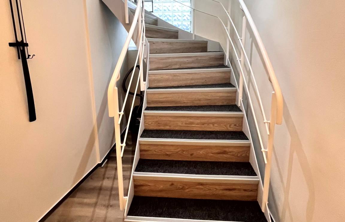Dieses im Untergeschoss liegende Studio verfügt über eine Eingangstreppe, die nach unten führt.