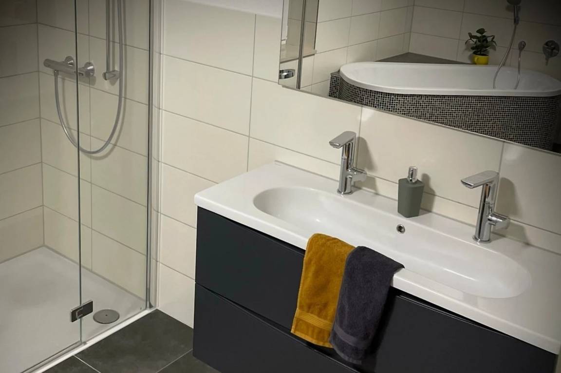 Im geräumigen Vollbad liegen Handtücher und Haartrockner für Ihren Aufenthalt bereit.