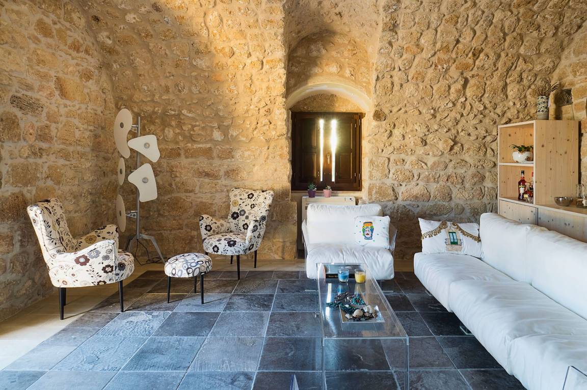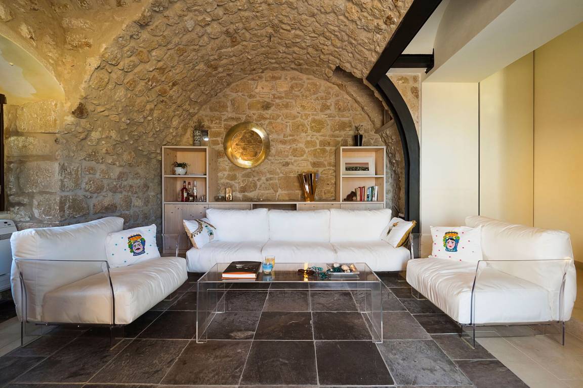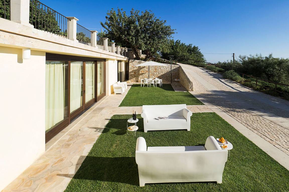 Wohnzimmer: drei Sofas (Personen: 7), drei Sessel, WiFi Internet, Internet, Fliegengitter, Ausgang auf die Terrasse.