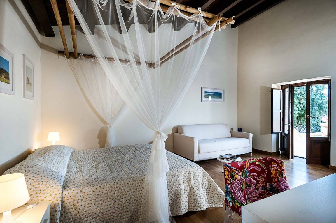 Schlafzimmer mit Bad: Doppelbett (Breite: 160m, Länge: 190m), WiFi Internet, Internet, Klimaanlage, Fliegengitter, Satelliten-TV, Sofa (Personen: 2), Sessel, Waschbecken, WC, Bidet, Ausgang auf die Terrasse.