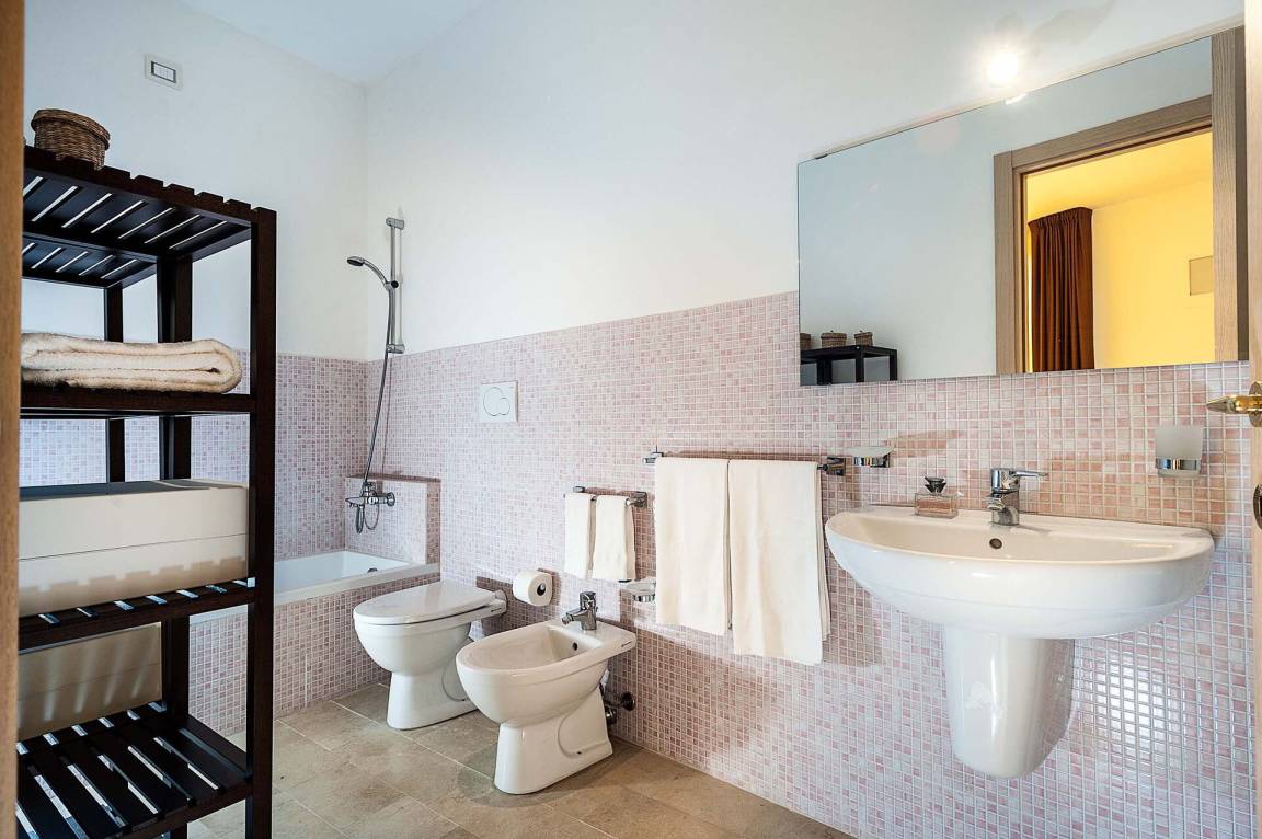 Schlafzimmer mit Bad 1: Doppelbett (Breite: 160m, Länge: 190m), WiFi Internet, Internet, Klimaanlage, Fliegengitter, Satelliten-TV, Waschbecken, WC, Bidet, Badewanne.