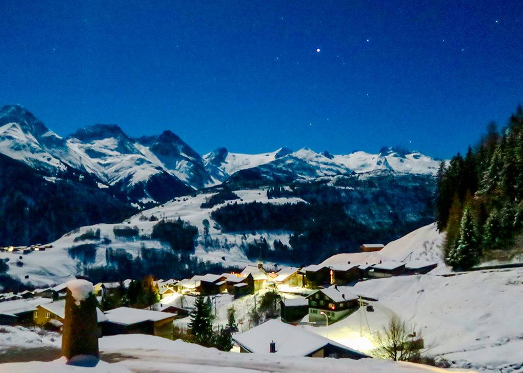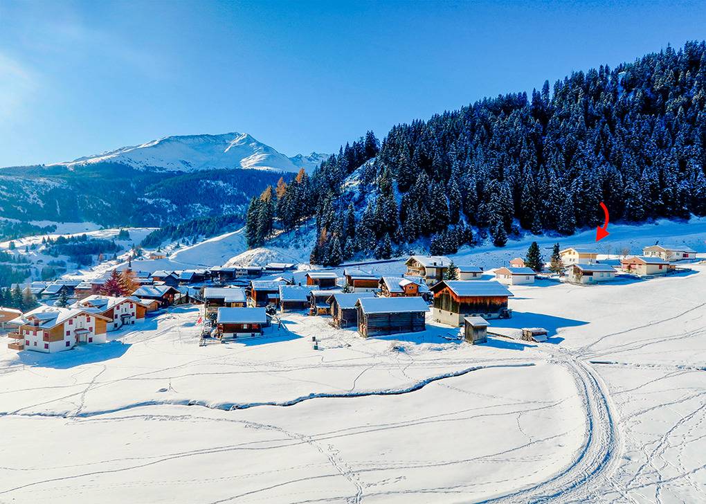 Ort: Disentis, Ortsteil Segnas, direkt an der Talabfahrt aus dem Skigebiet. Ruhige, sonnige Lage mit herrlicher Aussicht. Pkw-Zufahrt bis zum Haus, 1-2 Pkw-Stellplätze. Gondel Disentis (mit Skiabstellraum) 600 m Fußweg. Skiabfahrt vom und bis zum Haus bei entsprechender Schneelage.